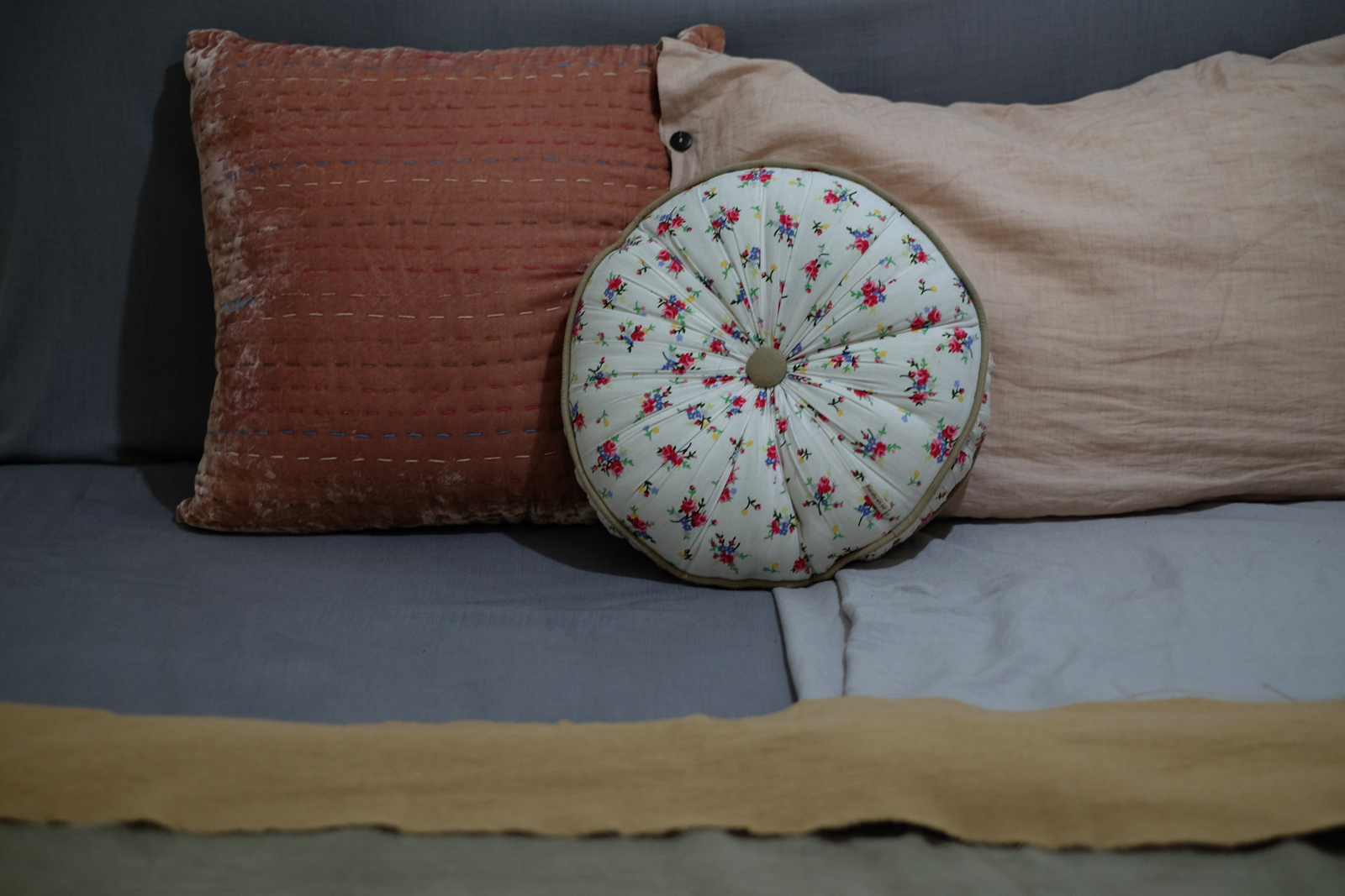 Lúc xếp đồ vào Sài Gòn, tôi đã nghĩ kiểu gì cũng phải mang theo bộ ga gối này, để dù bắt đầu từ đâu cũng sẽ có cảm giác thuộc về. Họ nói “Linen is a breathable fabric” – một chất liệu biết thở. Chúng thoát khí và hơi ẩm một cách tự nhiên, tương tác với các mùa và cơ thể người dùng. Bởi vậy mà từ cái rét nàng bân của Hà Nội tới cái nắng tháng ba của Sài Gòn, vẫn chỉ cần có thế.