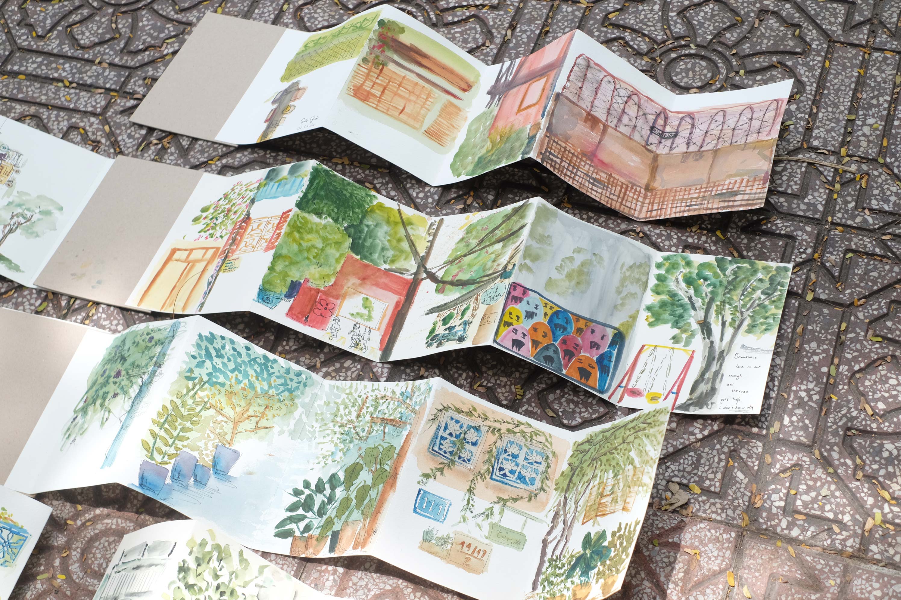 Tại mỗi điểm dừng, mình sẽ cùng chia sẻ về cách ký họa trên đường với họa cụ gọn nhẹ, cách để đơn giản và nắm bắt tức thì một khung cảnh, tạo ra nhịp điệu và câu chuyện riêng trên cuốn sổ accordion của mỗi người.